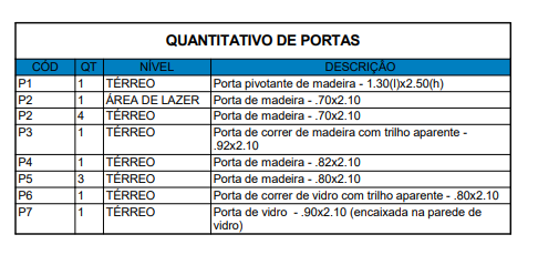 Quantitativo de materiais